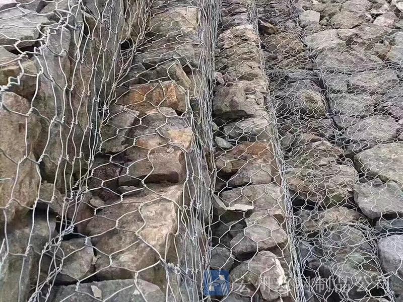 采用國內(nèi)外機器設備,編織而成的雙絞合六邊形金屬網(wǎng),鋼絲的直徑可達2.00M-4.00MM。為提高網(wǎng)箱的結構強度,每個網(wǎng)箱被平均分為約1M的間隔做一個隔片,而且在每片5%鋅鋁合金網(wǎng)箱的編織過程中,邊絲的直徑要比絞合的徑緯雙絲加粗一個規(guī)格的絲號,以提高網(wǎng)片的牢固性。所有設計均符合國家標準,質(zhì)量無可挑剔。